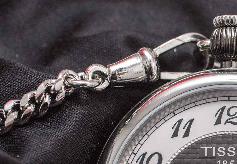 天梭生產的 Bridgeport Lepine 懷表型號為 T860.405.29.032.00,采用拋光鋼表殼,灰色內表盤和藍色指針,或型號 T860.405.29.032.01,采用鋼和 PVD ??涂層玫瑰金表殼搭配更傳統的淺銀色表盤。當然,還包括一條攜帶鏈。