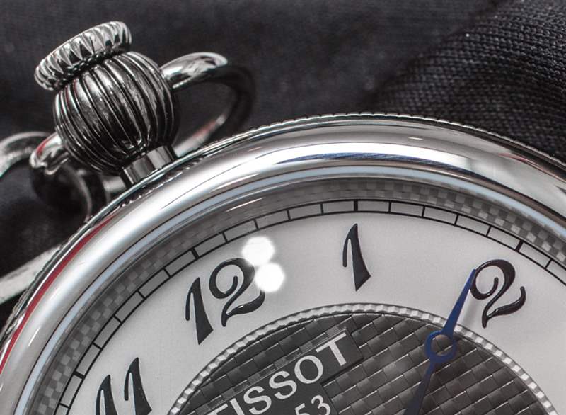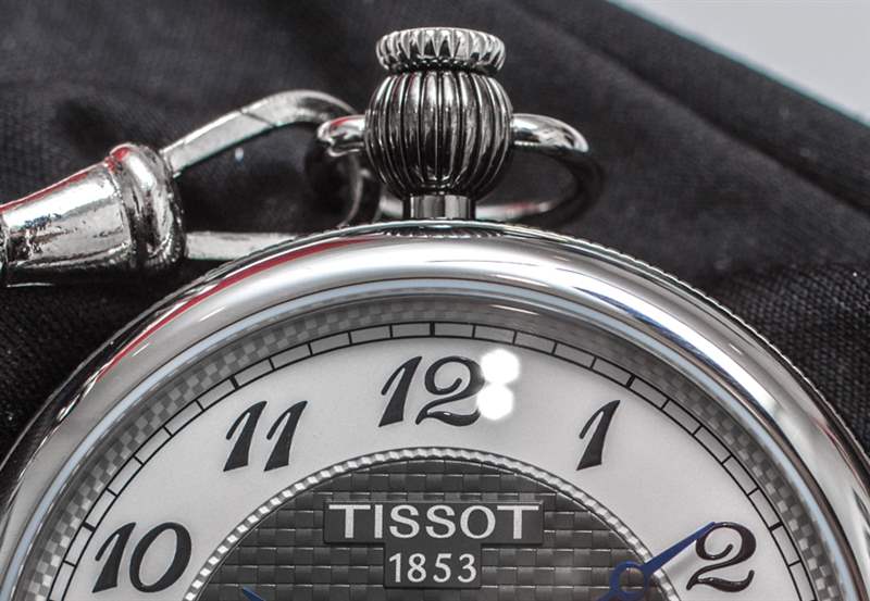 天梭在天梭 Bridgeport Lepine 機械表盤的中間使用了一種有趣且不常見的“編織式”圖案,這種圖案您每天都看不到。有趣的是,懷表和腕表都是 45 毫米寬,而懷表稍微薄了一點,只有 10.47 毫米厚(防水 30 米)。與腕表不同的是,它的表盤上有一塊礦物水晶——但同樣,由于它不在手腕上,因此它的價格更低,磨損也更少。