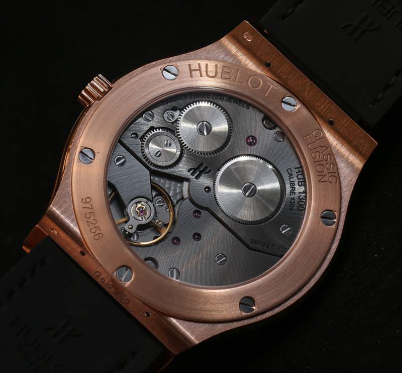 說到機芯,Classic Fusion 超薄 42 毫米閃亮表盤包含一個名為 Hublot HUB 1301(又名 HUB1301.4)的自制 HUB 1300 系列機芯。手動上鏈,該機芯僅提供帶有輔助秒盤的時間,并具有 90 小時的動力儲存,以 21,600 bph 運行。宇舶 (Hublot) 以深色無煙煤電鍍處理,并帶有迷人的拋光效果。它看起來既經典又現代。您可以通過展覽底蓋窗口看到機芯。這是一個簡單的機制,但考慮到手表的主題肯定令人滿意。廣告留言廣告信息結束