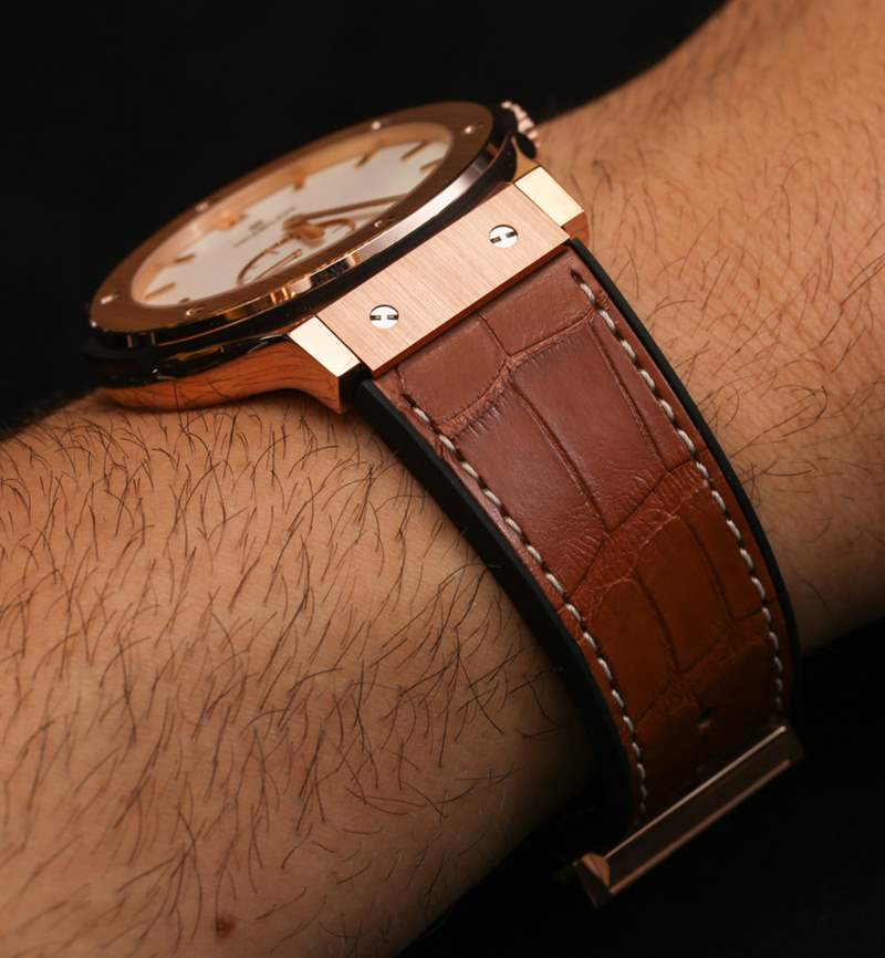在寫這篇文章的前幾天發生了一個有趣的巧合。在旅行中,我遇到了一位佩戴“pre-Biver”Hublot 的紳士,并恰好對此發表評論,認為他是一名手表專家。他有點像,結果證明他幾乎只收集在重新推出之前和大爆炸之前存在的“舊”Hublot 手表。作為一個更保守的人,他說 Hublot 的新款運動款不是他的菜,他會抓住他能抓住的復古 Hublot 型號。因此,先生,這款 Classic Fusion 42 毫米超薄閃亮表盤表柱謹向您致敬。