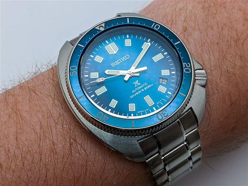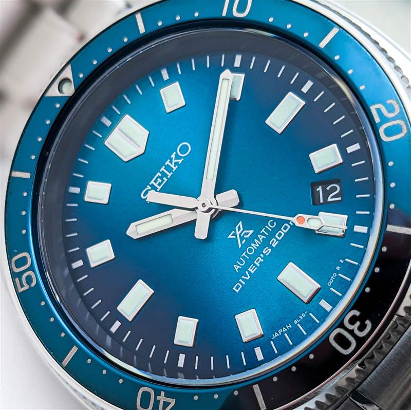 Seiko 因其在其整個(gè)型號(hào)系列中打造極具吸引力的表盤而享有盛譽(yù),但即使按照該品牌自己的標(biāo)準(zhǔn),Prospex SLA063 的表盤也是真正的佼佼者。SLA063 的調(diào)色板旨在喚起北極光的發(fā)光、空靈的色彩,立即將自己從 Prospex 系列的其他產(chǎn)品中脫穎而出,這種動(dòng)態(tài)外觀是多級(jí)精加工工藝的結(jié)果。首先,該品牌在這里使用了一種非正統(tǒng)的漸變效果,表盤的邊緣在 3 點(diǎn)鐘和 9 點(diǎn)鐘位置漸變?yōu)樯钗缫顾{(lán)色,與從 12 點(diǎn)鐘方向延伸至 6 點(diǎn)鐘方向的較亮條紋形成鮮明對(duì)比。接下來(lái)是經(jīng)典的旭日形效果,具有適度的顆粒感和寬廣的動(dòng)態(tài)范圍。在此之上,精工在表盤表面添加了淡淡的波紋紋理,這有助于在視覺(jué)上柔化旭日紋理的邊緣,使其更像北極光的幽靈般纖細(xì)的外觀。當(dāng)然,最引人注目的元素是表盤顏色本身。這種豐富、細(xì)膩的藍(lán)色色調(diào)在不斷變化的光線下顯示出多種多樣的陰影變化和底色,從近乎黑色到鈷藍(lán)色、綠松石色,甚至淡綠色。這是一種閃閃發(fā)光、復(fù)雜的色調(diào)組合,很難在相機(jī)上捕捉到,但在實(shí)踐中立即引人注目。這種對(duì)細(xì)微差別的承諾也延伸到 SLA063 的表盤文字和外部分鐘軌道,采用精致的金屬銀色印刷呈現(xiàn),為手腕上的表盤增添了額外的光彩。表盤布局本身的其余部分大多遵循熟悉的“Willard”圖案,忠實(shí)再現(xiàn)矩形應(yīng)用索引,6105 獨(dú)特的指揮棒聽(tīng)筒和一眼就能認(rèn)出的“紅綠燈”秒針上的變化。精工將 SLA063 的日期窗口移至 4:30 位置的決定可能會(huì)引起爭(zhēng)議,但這種偏離中心的位置有助于在視覺(jué)上保留索引的布局,而黑色日期輪則讓這個(gè)元素在看時(shí)或多或少地消失撥號(hào)。