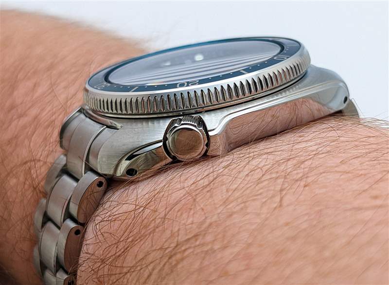 精工將 Prospex SLA063 與兩個(gè)包含的表帶選項(xiàng)配對(duì)。其中首先是對(duì) Seiko 6105 的黑色橡膠“輪胎痕跡”表帶進(jìn)行現(xiàn)代重新構(gòu)想,但我們的評(píng)測(cè)樣品送達(dá)時(shí)只有不銹鋼表鏈。Seiko 的手鐲在一些愛(ài)好者中名聲不好,但 SLA063 比該品牌的普通手鐲產(chǎn)品有幾項(xiàng)切實(shí)的改進(jìn)。對(duì)于初學(xué)者來(lái)說(shuō),雖然乍一看可能并不明顯,但中心鏈節(jié)邊緣的拋光口音實(shí)際上是完全獨(dú)立的元素。制作這些額外的窄鏈節(jié)的決定使精工能夠在此處從平滑的垂直拉絲到明亮的拋光實(shí)現(xiàn)完美清晰的過(guò)渡,并在兩種飾面之間具有深陰影邊界的額外好處。表扣也是 Seiko 更實(shí)惠型號(hào)的顯著提升,采用全機(jī)械加工的雙按鈕設(shè)計(jì),為手腕上的手鐲增添了令人愉悅的重量感和堅(jiān)固感。話雖如此,這個(gè)表扣兩側(cè)的潛水員延伸部分非常難以操作,其鉸鏈偏心位置在實(shí)際佩戴條件下可能會(huì)使手表略微失去平衡。最后,實(shí)心末端鏈節(jié)的外形比 SLA063 的凸耳明顯更纖細(xì),這會(huì)導(dǎo)致明顯的下降,這可能會(huì)阻止習(xí)慣于嵌入式末端鏈節(jié)設(shè)計(jì)的愛(ài)好者。其鉸鏈?zhǔn)狡奈恢迷趯?shí)際佩戴條件下可能會(huì)使手表略微失去平衡。最后,實(shí)心末端鏈節(jié)的外形比 SLA063 的凸耳明顯更纖細(xì),這會(huì)導(dǎo)致明顯的下降,這可能會(huì)阻止習(xí)慣于嵌入式末端鏈節(jié)設(shè)計(jì)的愛(ài)好者。其鉸鏈?zhǔn)狡奈恢迷趯?shí)際佩戴條件下可能會(huì)使手表略微失去平衡。最后,實(shí)心末端鏈節(jié)的外形比 SLA063 的凸耳明顯更纖細(xì),這會(huì)導(dǎo)致明顯的下降,這可能會(huì)阻止習(xí)慣于嵌入式末端鏈節(jié)設(shè)計(jì)的愛(ài)好者。