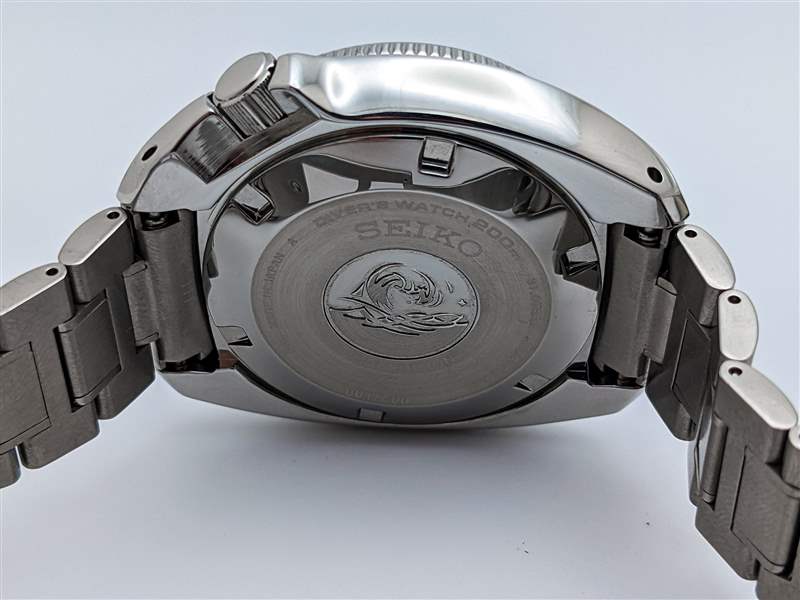 與許多 Seiko 表殼一樣,Prospex SLA063 在實(shí)踐中違背了它的尺寸。由于短表耳和嚴(yán)重的表殼底切相結(jié)合,最大限度地減少了其在手腕上的足跡,因此這款手表的佩戴比其 44 毫米寬的直徑建議的要小得多。精工專有的超硬涂層應(yīng)該有助于這款表殼在購(gòu)買后很長(zhǎng)一段時(shí)間內(nèi)保持無(wú)劃痕,同時(shí)不會(huì)放棄不銹鋼的傳統(tǒng)外觀。話雖如此,SLA063 外殼的特殊形狀可能并不適合所有口味,尤其是在這個(gè)(相對(duì))較高的價(jià)格點(diǎn),愛(ài)好者更習(xí)慣于傳統(tǒng)的豪華潛水員設(shè)計(jì)。Seiko 在這款表殼的頂部飾有堅(jiān)固的雕刻底蓋,底蓋上印有該品牌熟悉的波浪標(biāo)志,并為這款手表評(píng)定為符合 ISO 標(biāo)準(zhǔn)的 200 米防水性能。
